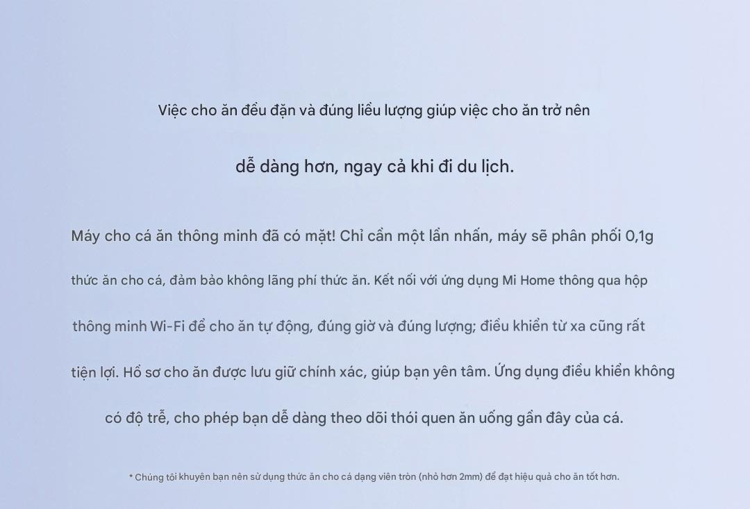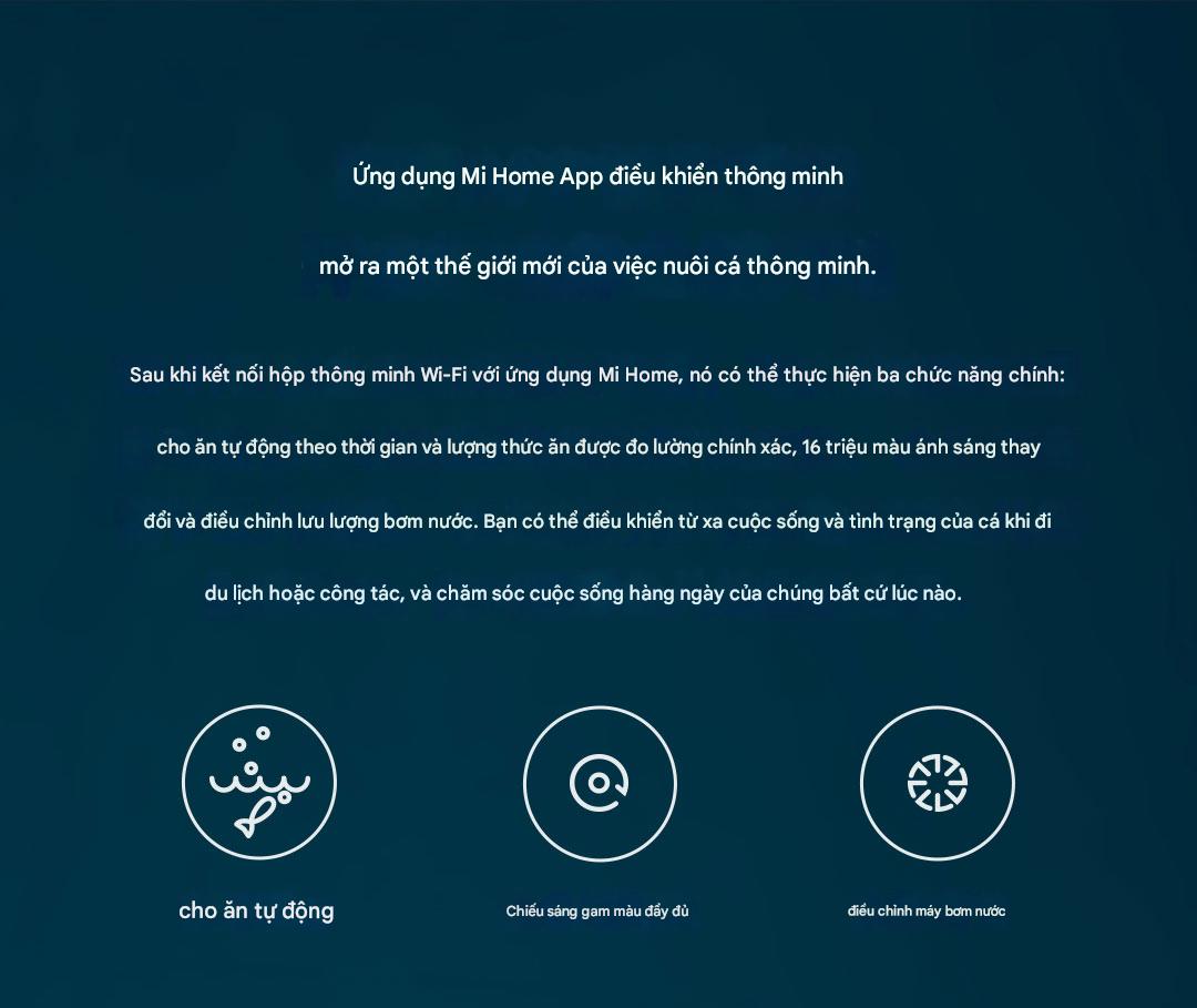 Điều khiển thông minh qua ứng dụng Mi Home: Quản lý toàn bộ việc cho ăn, ánh sáng và hệ thống lọc từ xa, chăm sóc cá mọi lúc mọi nơi.