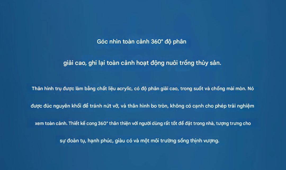 Thân hình trụ acrylic 360°: Chất liệu acrylic trong suốt, đúc nguyên khối chống nứt vỡ, thiết kế cong không góc cạnh – quan sát toàn cảnh mọi góc nhìn.