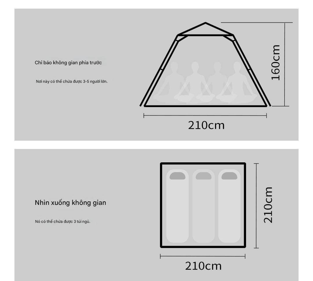 Kích thước mở bung: 210*210*160cm