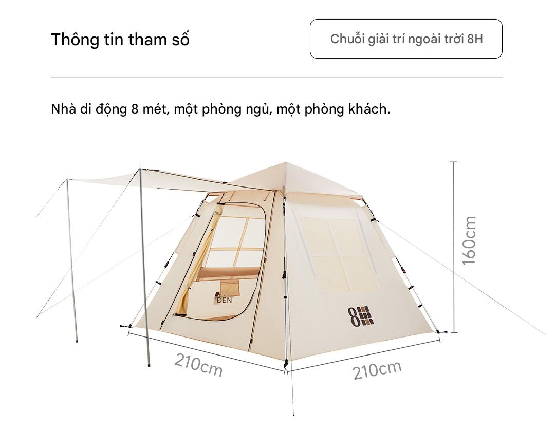 Lều cắm trại tự động Xiaomi 8H Rice House – Chống Nắng UPF50+, Chống Thấm PU2000+, Full Phụ Kiện