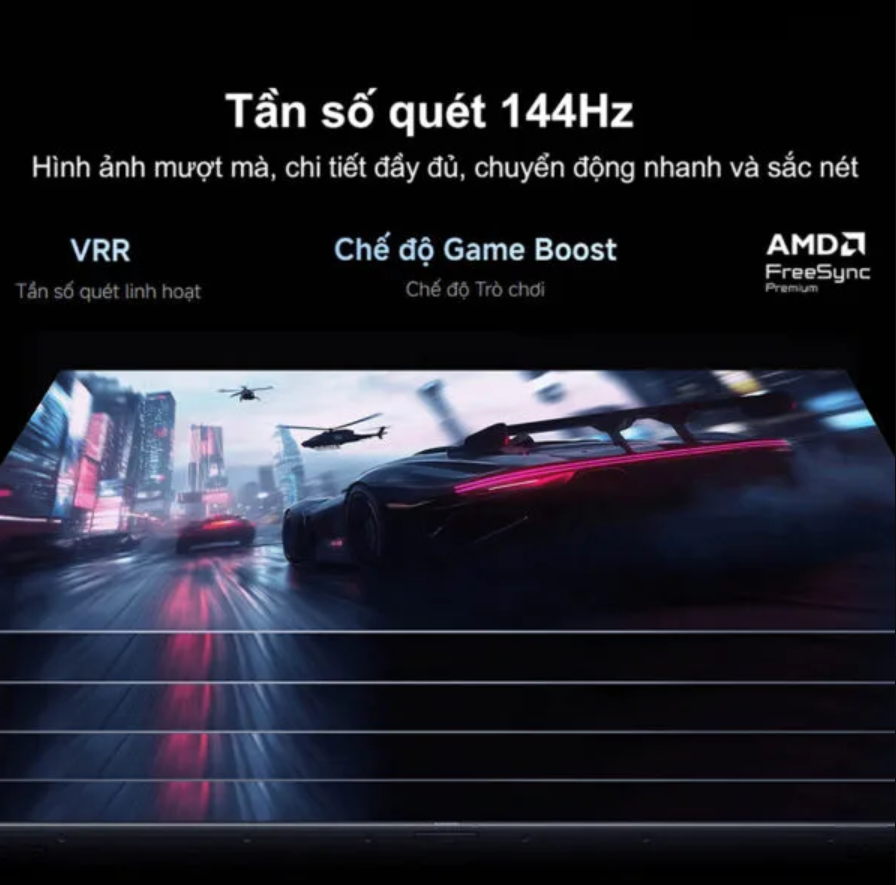 Tần số quét 144 Hz không chỉ phục vụ gaming. Nó còn nâng cao chất lượng xem phim hành động, thể thao. Giúp người xem tận hưởng những cú sút bóng, đường đua tốc độ cao một cách rõ ràng và chân thực nhất.