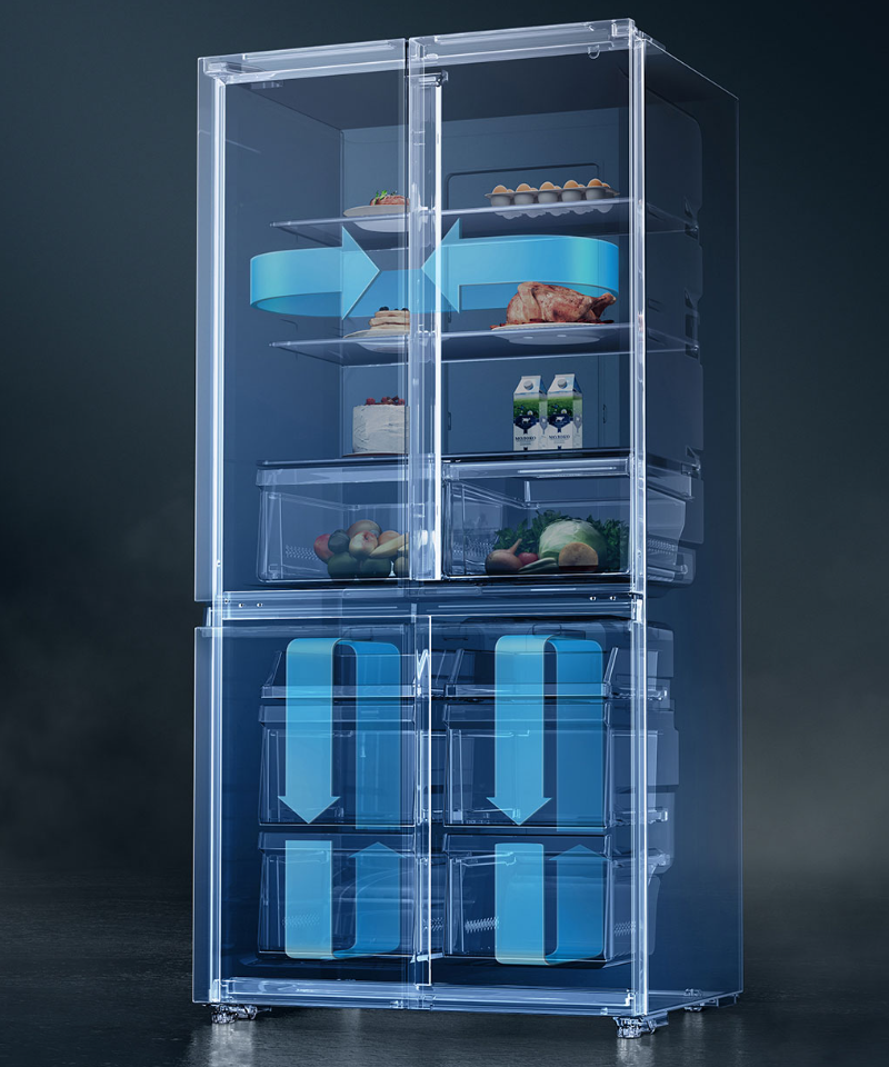 Tủ lạnh chứa nhiều loại thực phẩm sống – chín đan xen là môi trường lý tưởng cho vi khuẩn phát triển. Một chiếc tủ lạnh hiện đại cho gia đình nấu nướng thường xuyên bắt buộc phải có hệ thống khử mùi chủ động. Điều này đảm bảo mỗi khi bạn mở tủ, không khí luôn trong lành, không có mùi hôi khó chịu bám vào các nguyên liệu nhạy cảm như bơ, sữa hay trái cây.